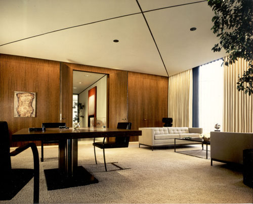 1958年には、ニューヨークの高層ビル「リーバ・ハウス」内にあった損害保険会社インシュランス本社オフィス、同年ミース・ファン・デル・ローエとフィリップ・ジョンソンが設計したシーグラム・ビルディングの「The Four Seasons Restaurant」(2019年閉店後「The Grill」)、1960年には『Look Magazine』本社オフィスのインテリアデザインを手掛けた。この頃、幾何学模様のスクリーンで有名だったエルウィン・ハウアー・スタジオとコラボレートしている。