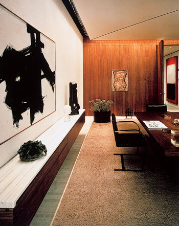 1958年には、ニューヨークの高層ビル「リーバ・ハウス」内にあった損害保険会社インシュランス本社オフィス、同年ミース・ファン・デル・ローエとフィリップ・ジョンソンが設計したシーグラム・ビルディングの「The Four Seasons Restaurant」(2019年閉店後「The Grill」)、1960年には『Look Magazine』本社オフィスのインテリアデザインを手掛けた。この頃、幾何学模様のスクリーンで有名だったエルウィン・ハウアー・スタジオとコラボレートしている。