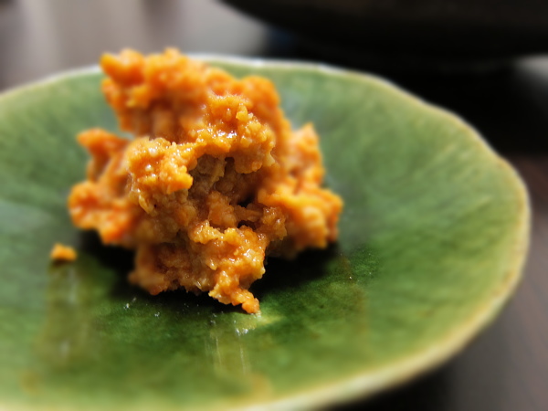 アンコウの肝は酒と和えて蒸すなり、レンジでチンするなりし、味噌と和えます。