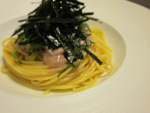 イカの塩気とうまみが凝縮した塩辛を使ったパスタ。